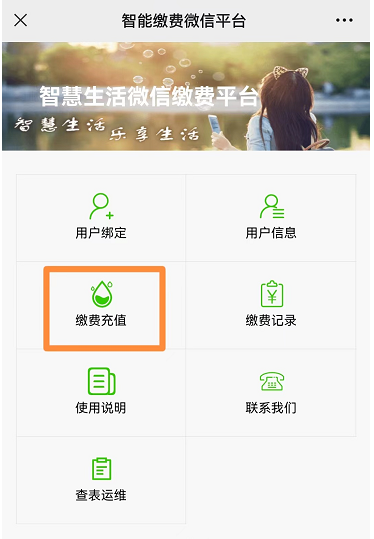 點(diǎn)擊繳費(fèi)充值,如果綁定了多塊水表,左右滑動(dòng)選擇要繳納水費(fèi)的表具后點(diǎn)擊繳費(fèi)按鈕。如圖