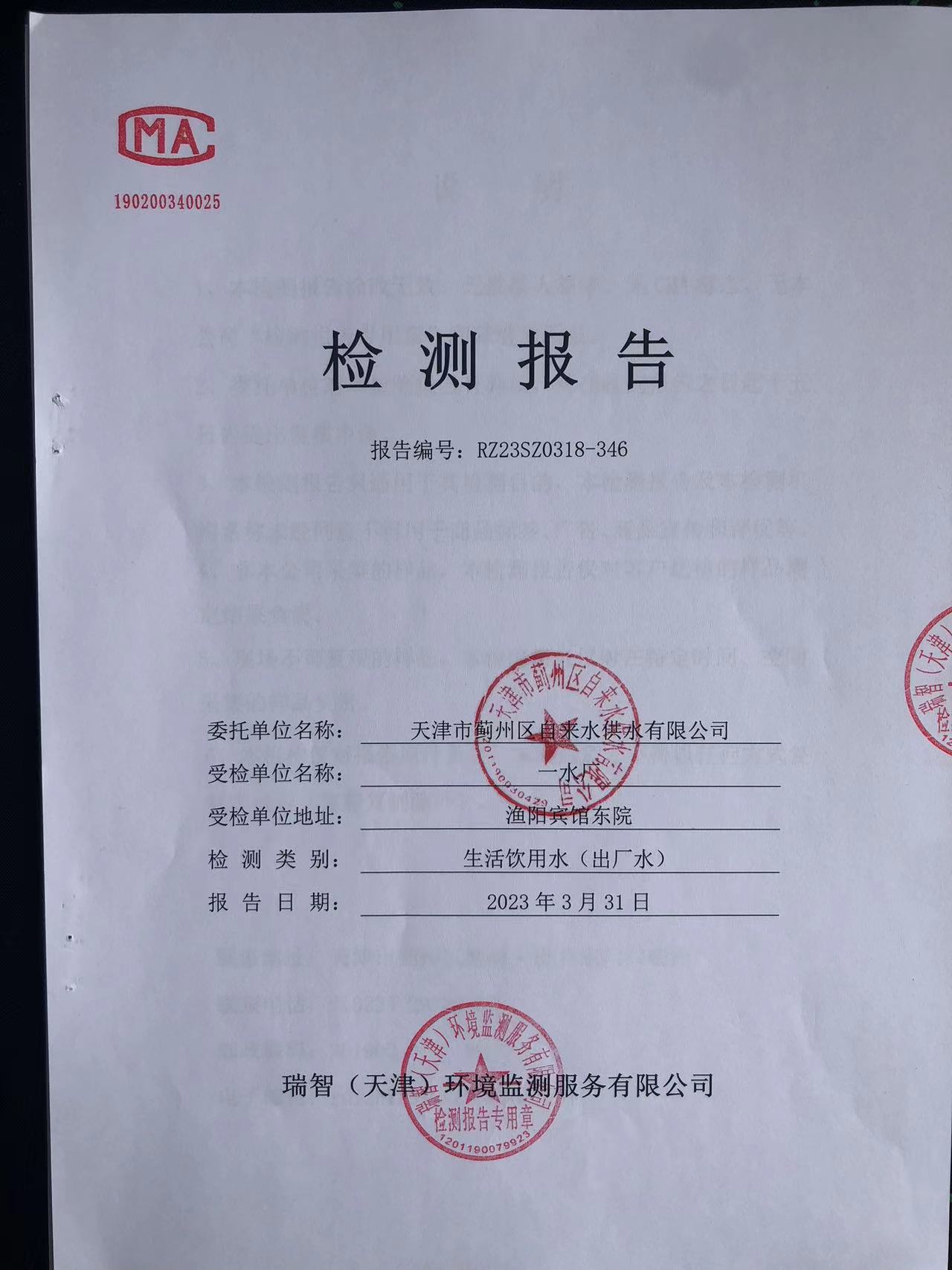 2023年3月份水質(zhì)檢測報(bào)告
