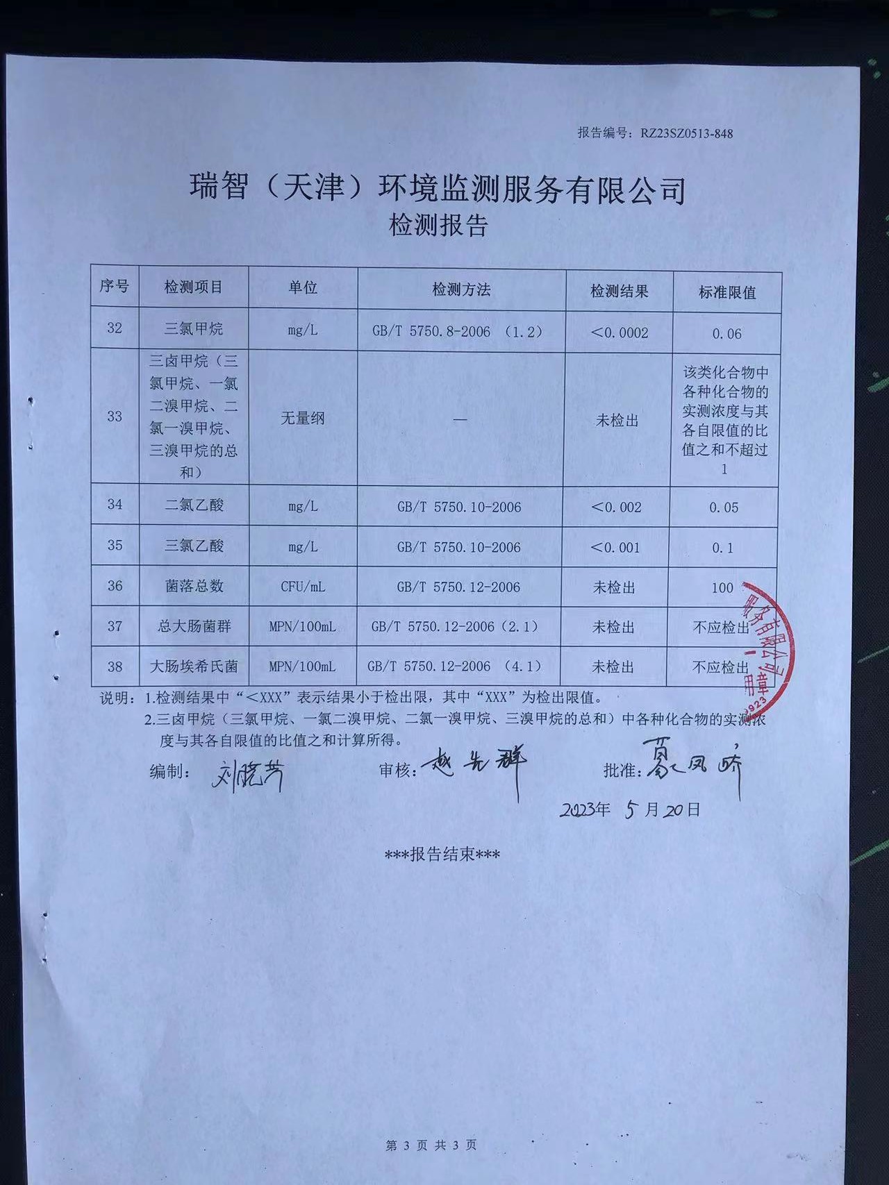 2023年5月份水質(zhì)檢測(cè)報(bào)告
