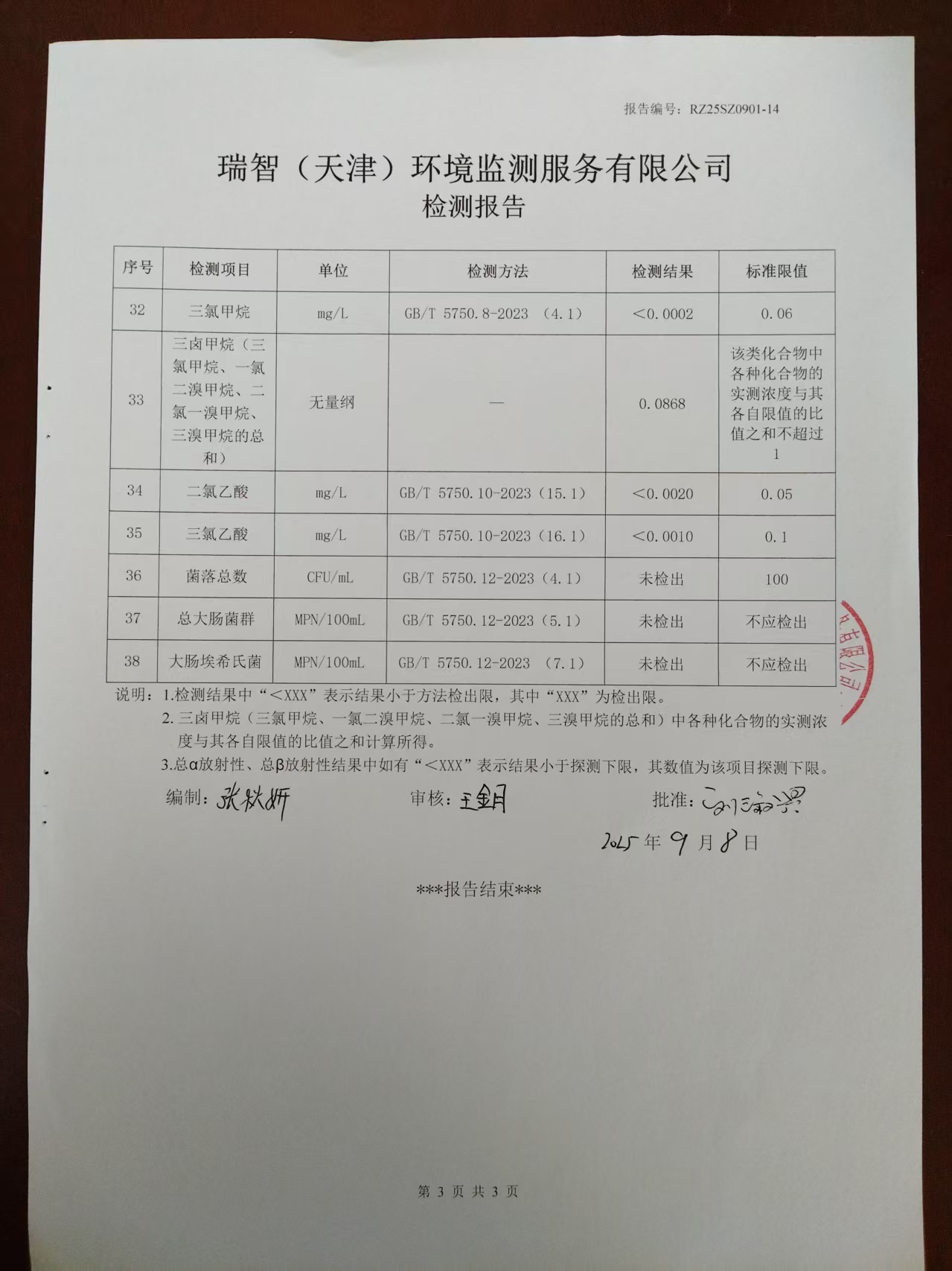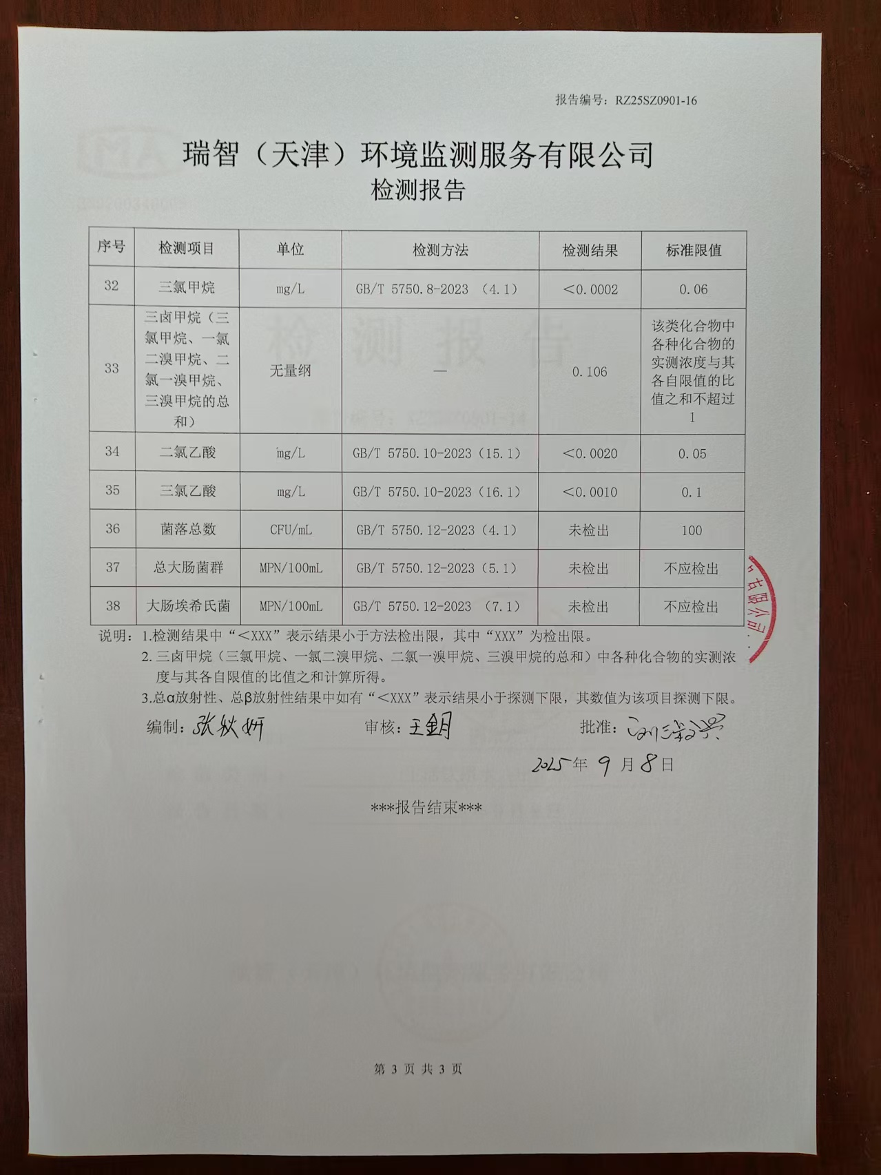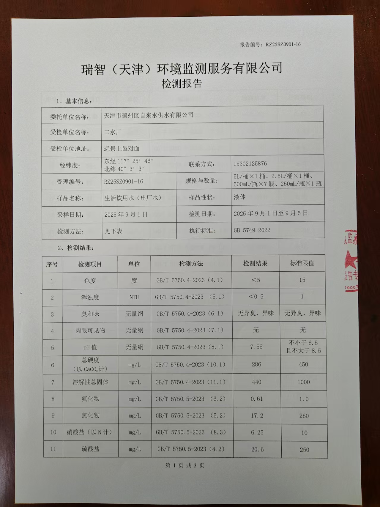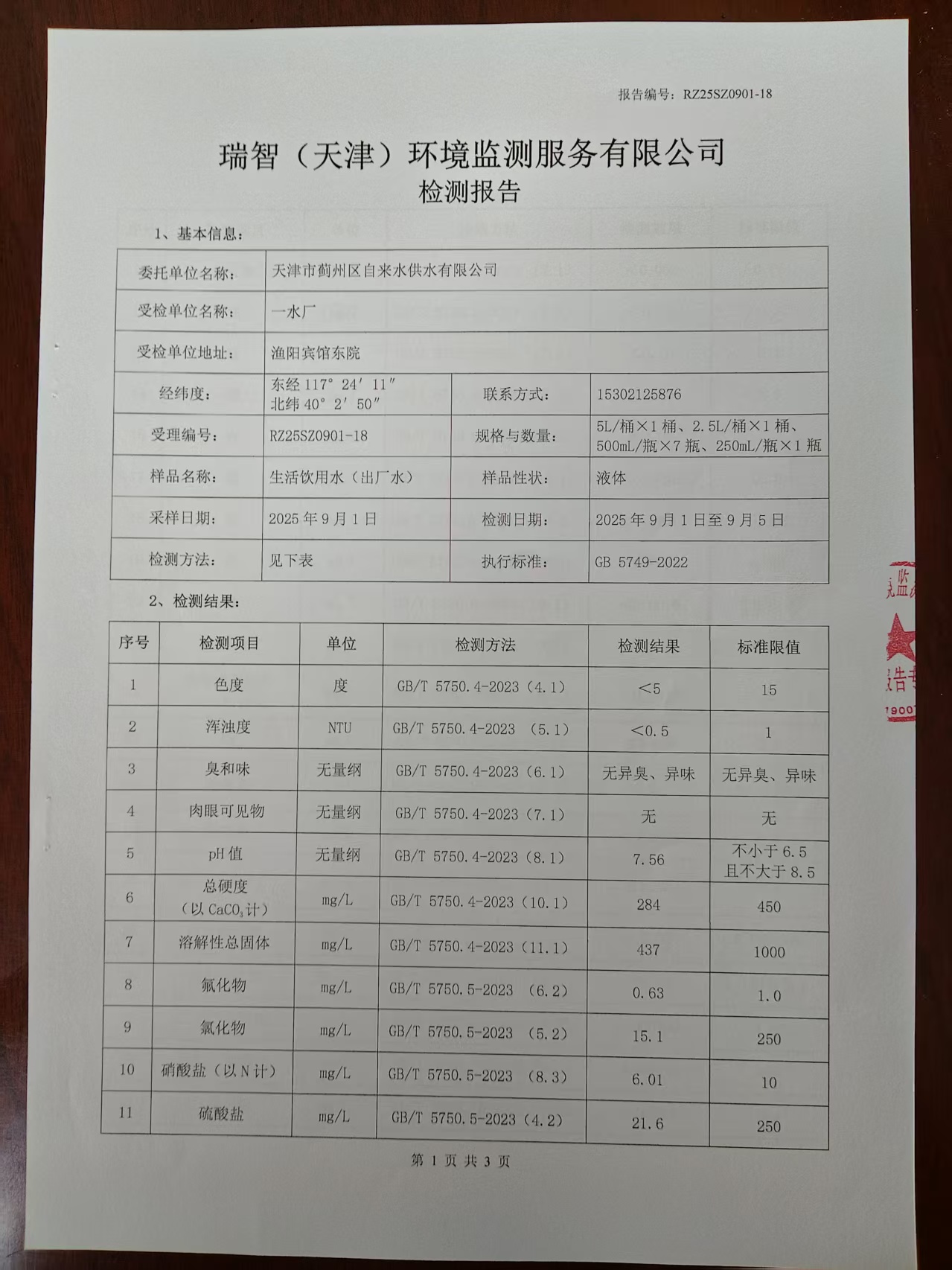 2025年9月份水質檢測報告