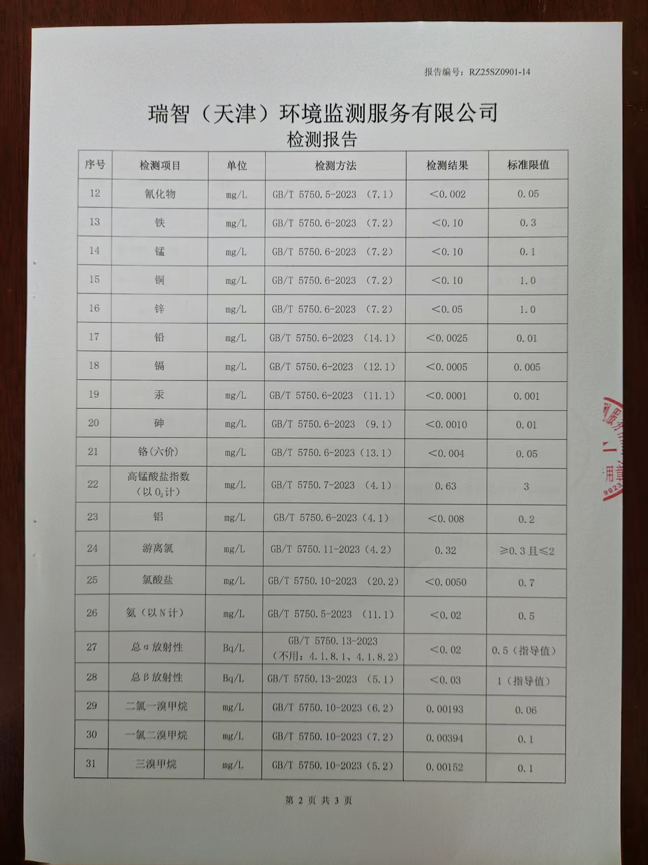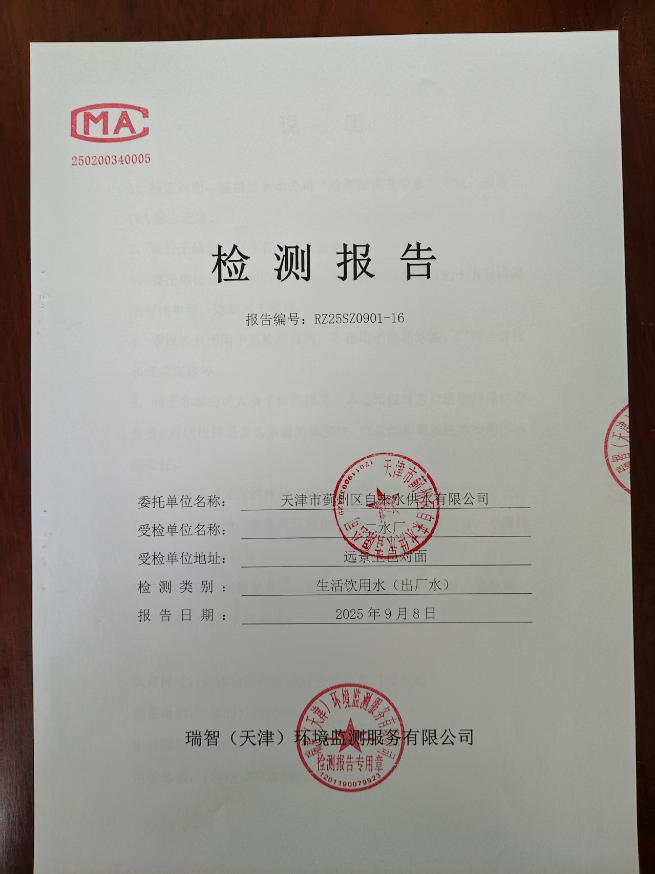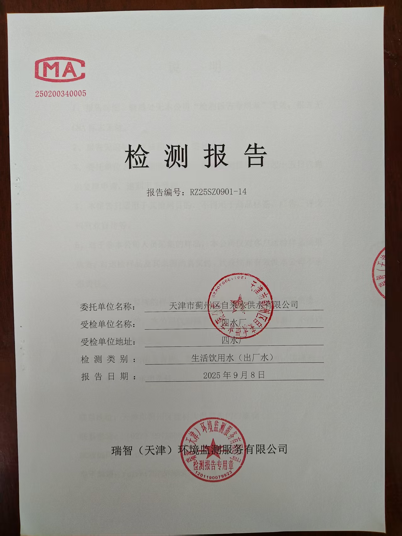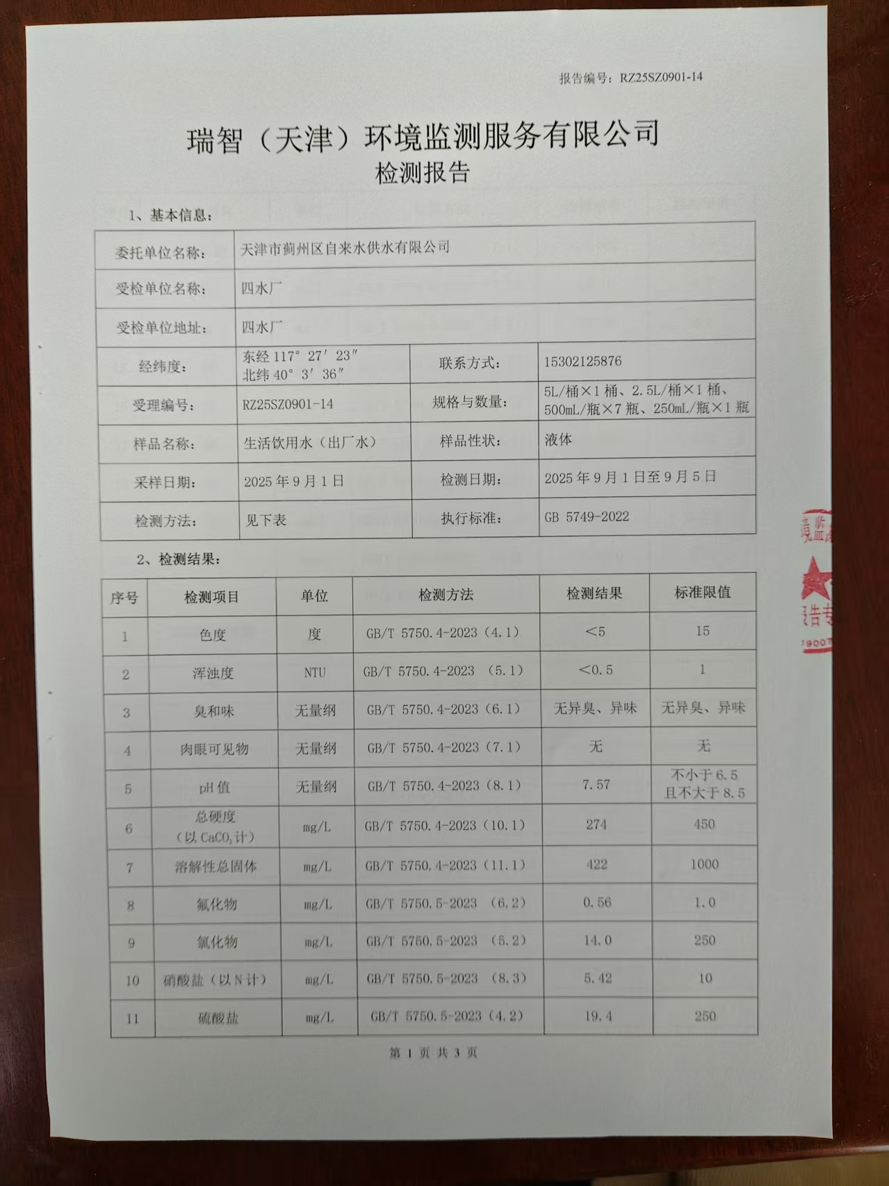 2025年9月份水質檢測報告
