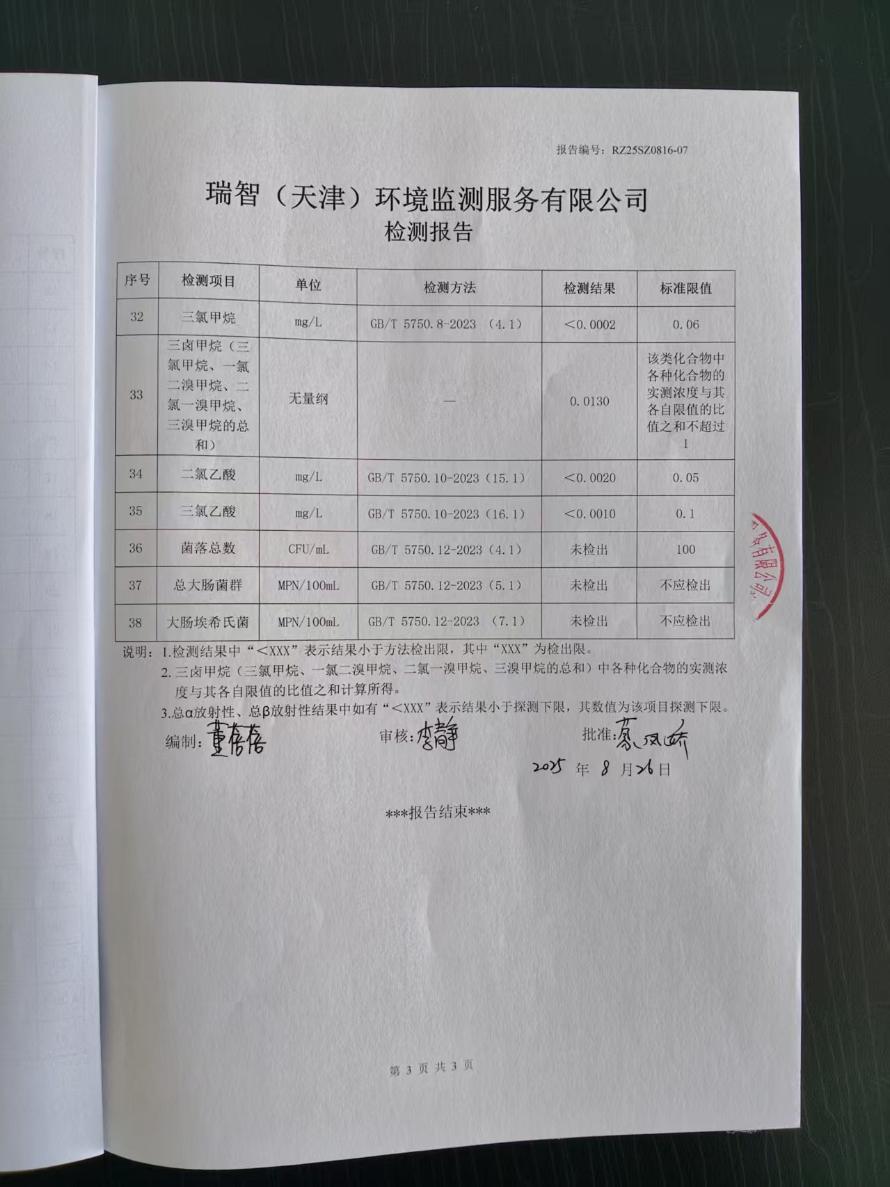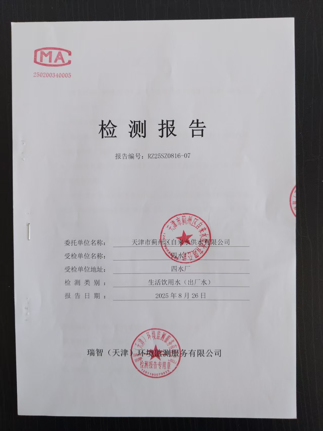 2025年8月份水質(zhì)檢測報告