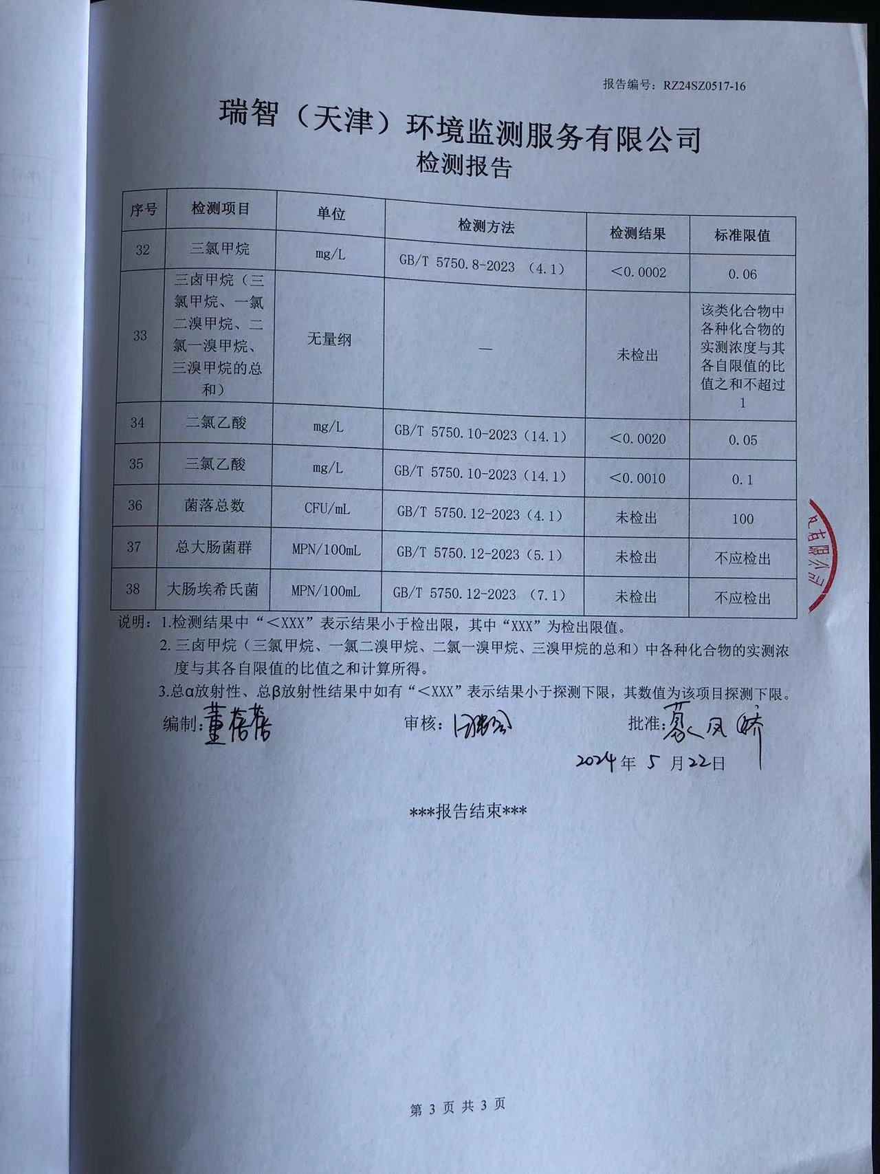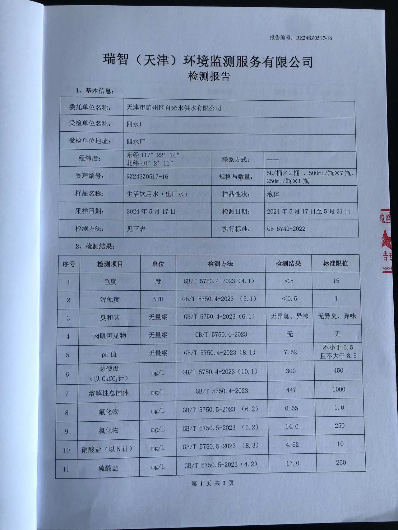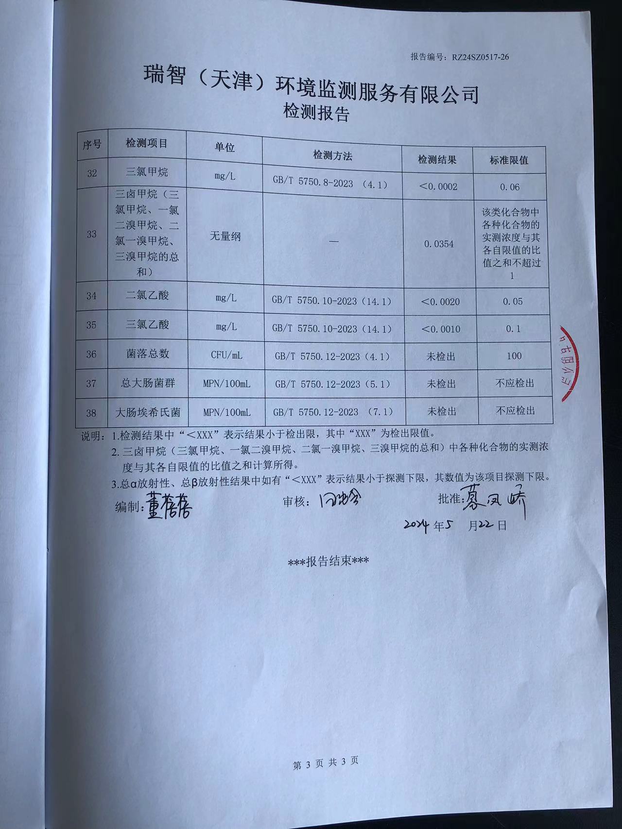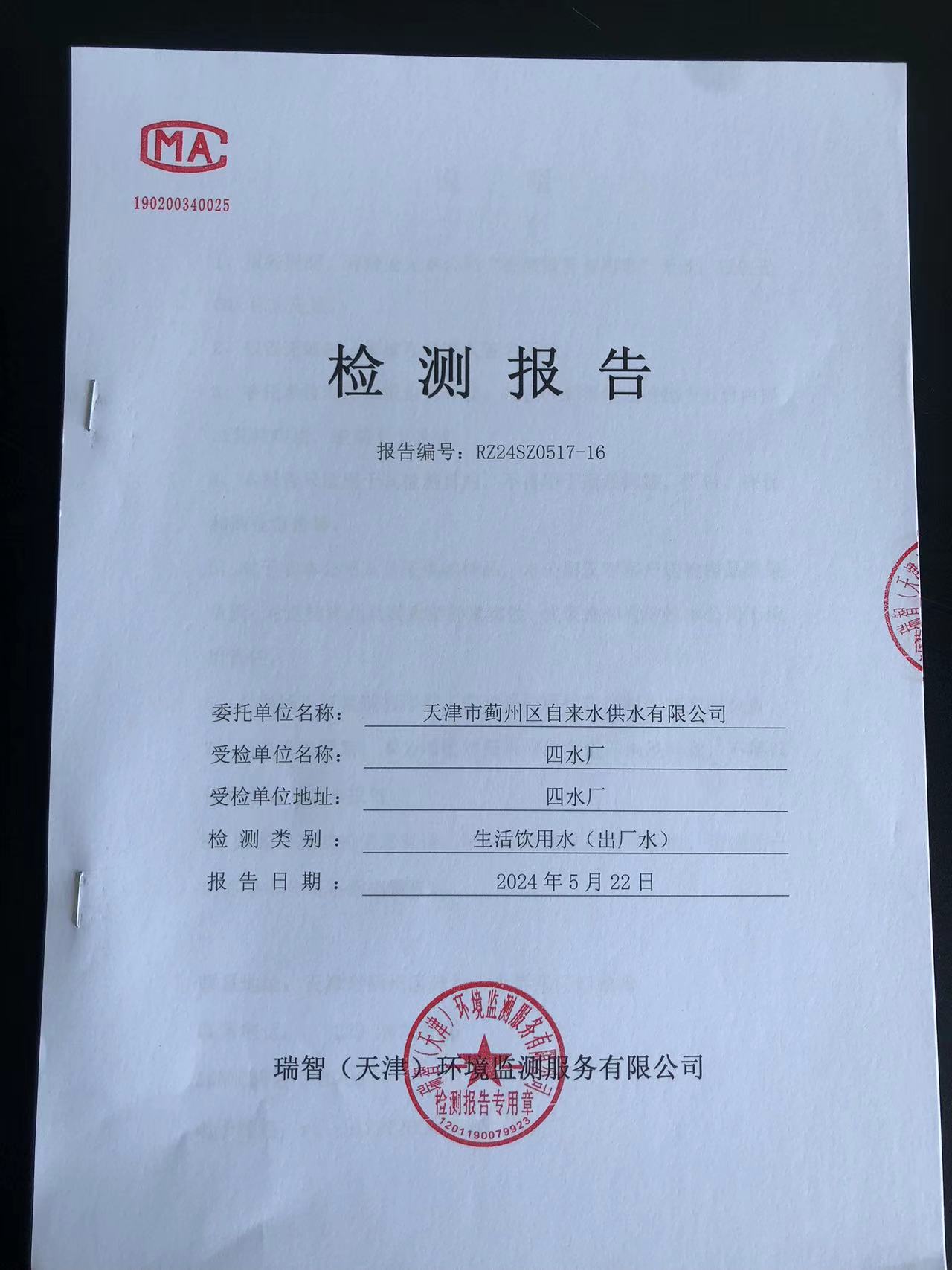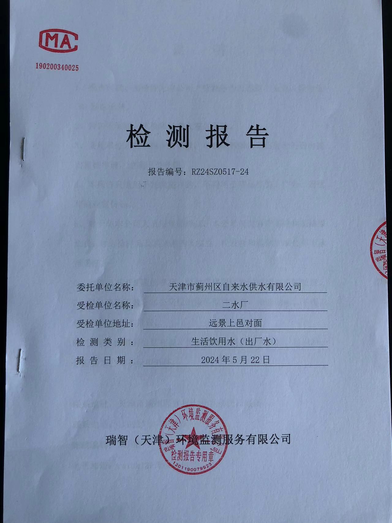 2024年5月份水質(zhì)檢測報(bào)告