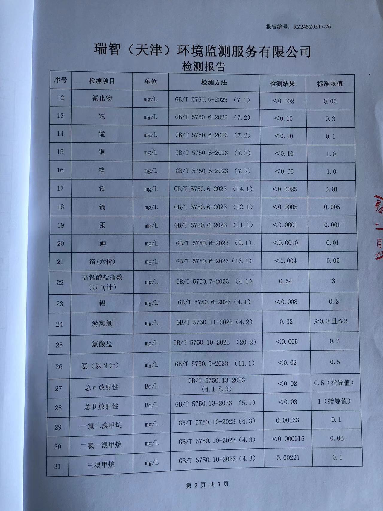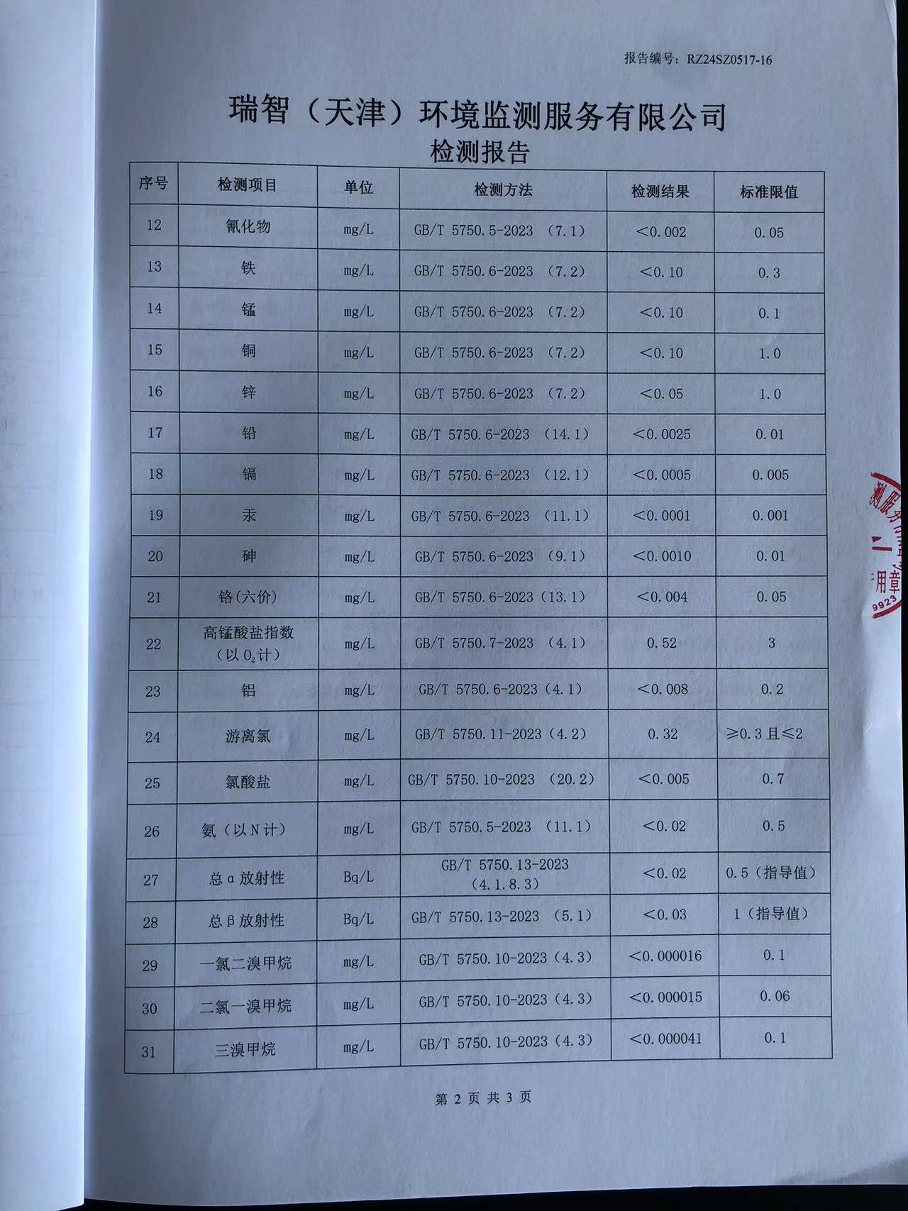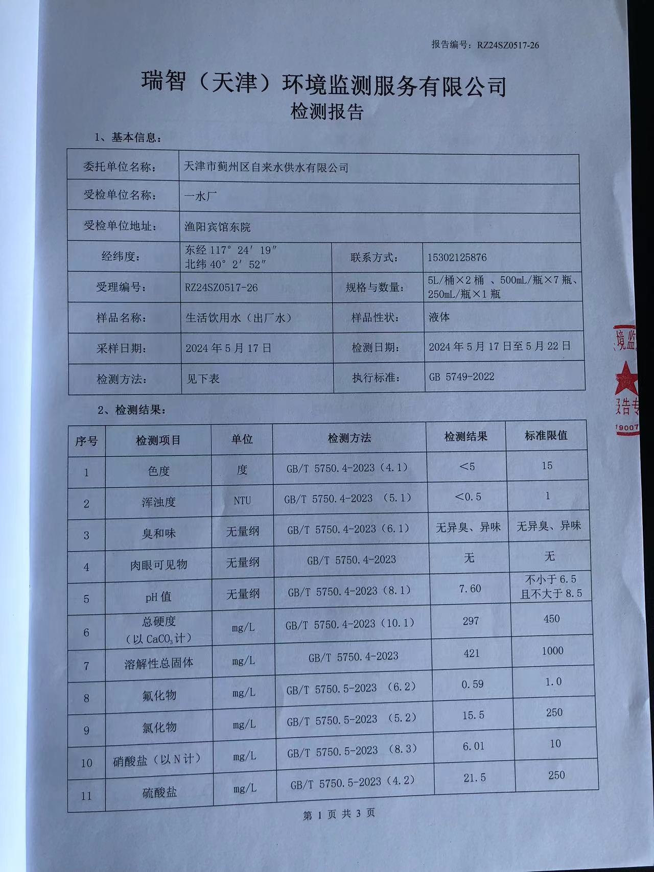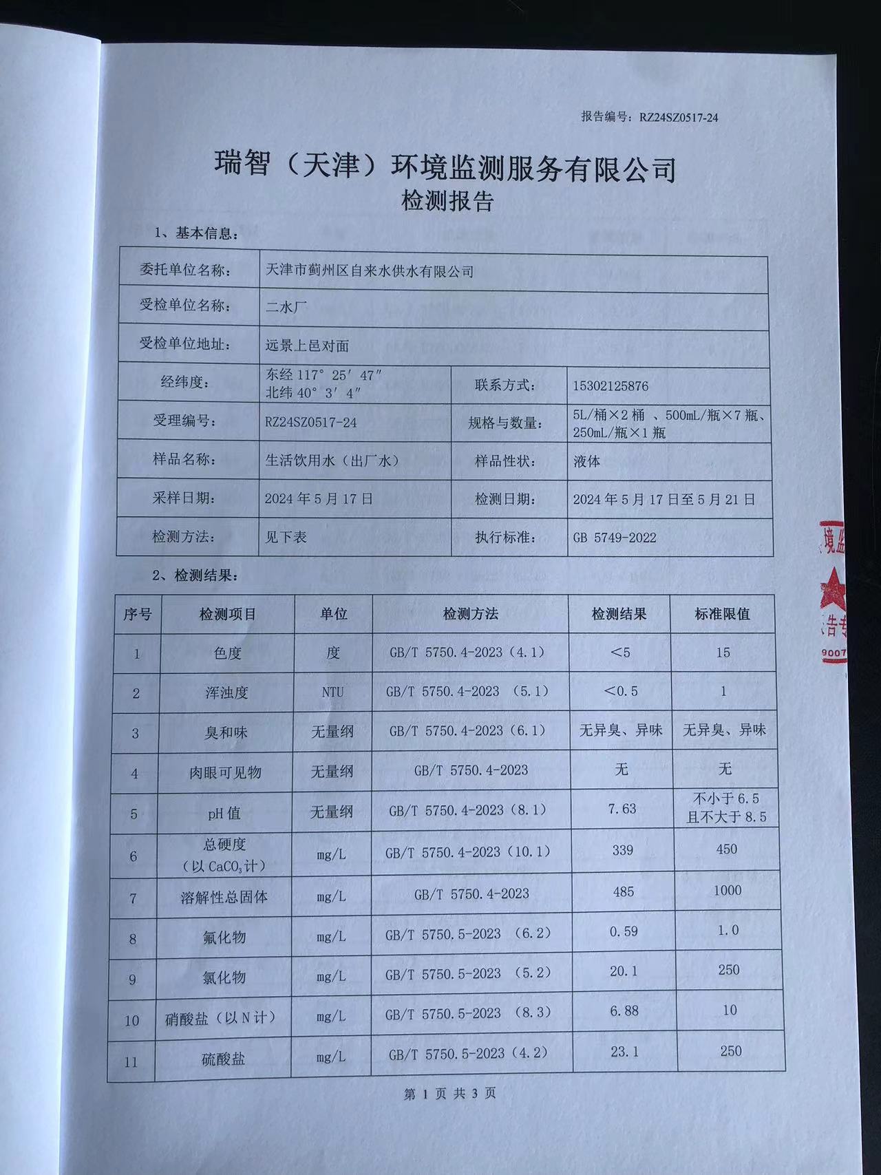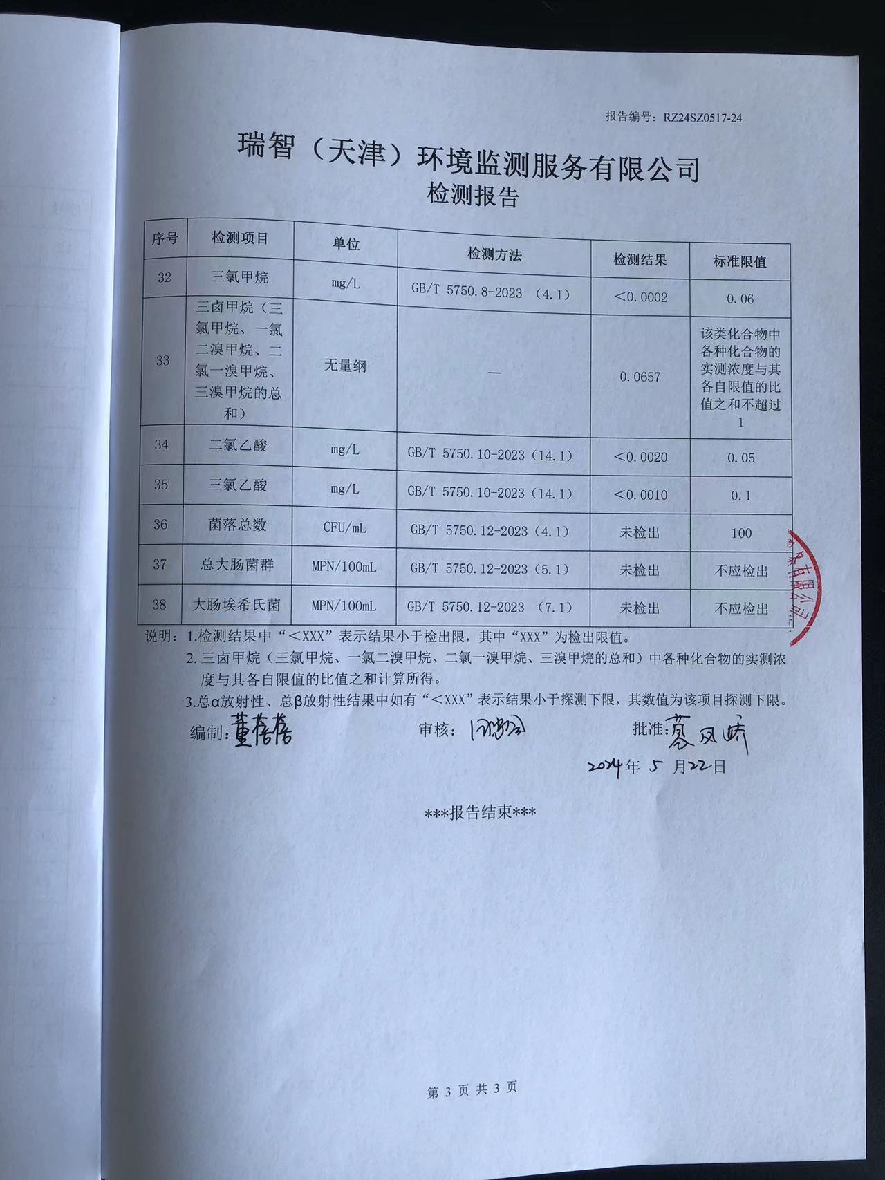 2024年5月份水質(zhì)檢測報(bào)告