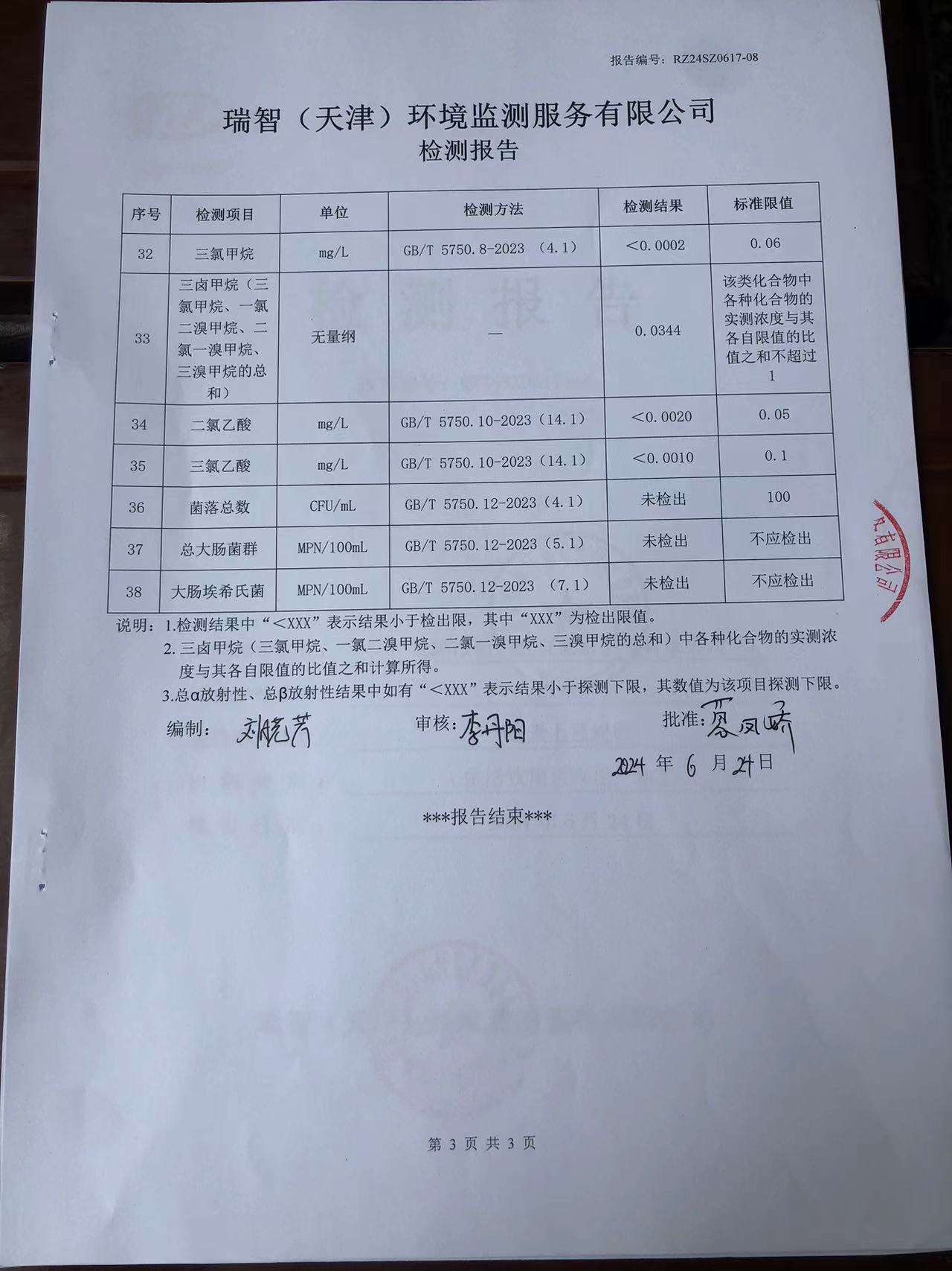 2024年6月份水質(zhì)檢測報告