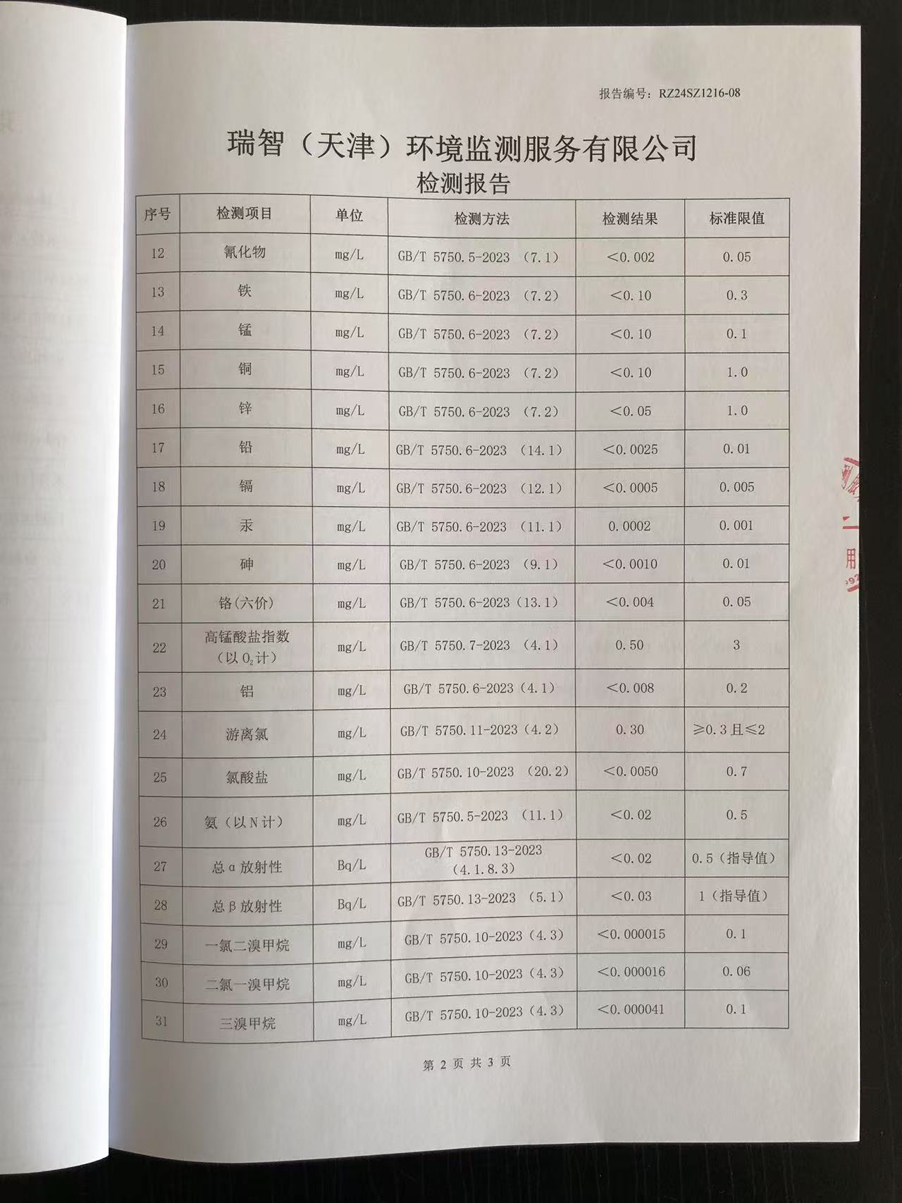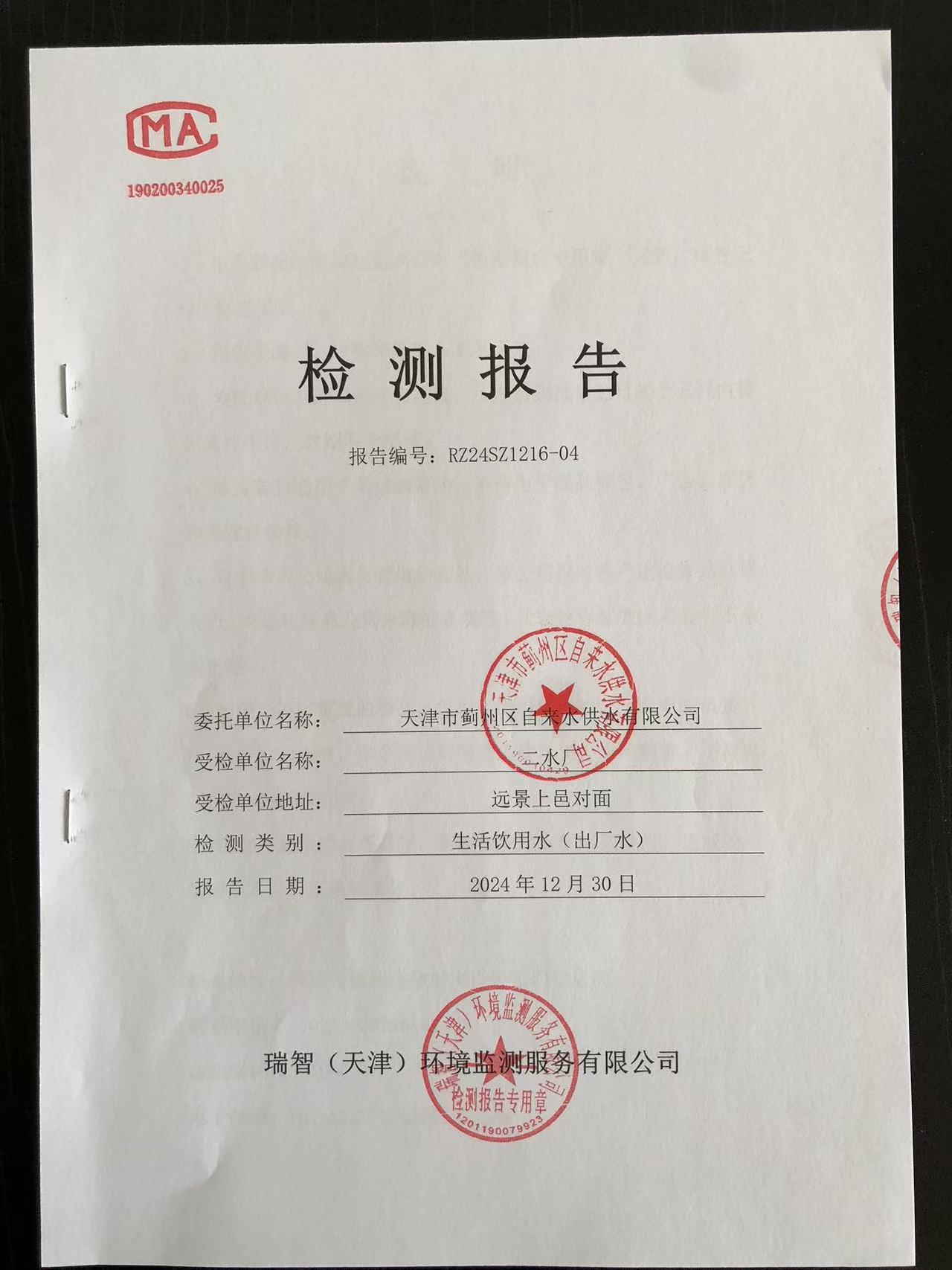 2024年12月份水質(zhì)檢測報(bào)告