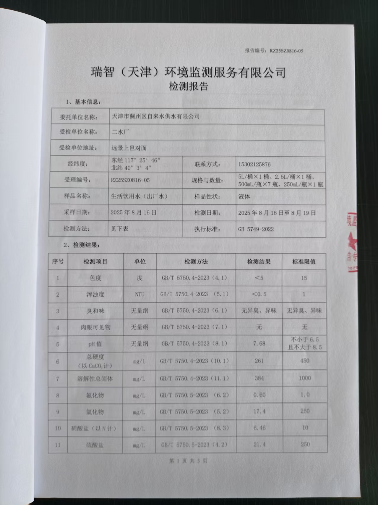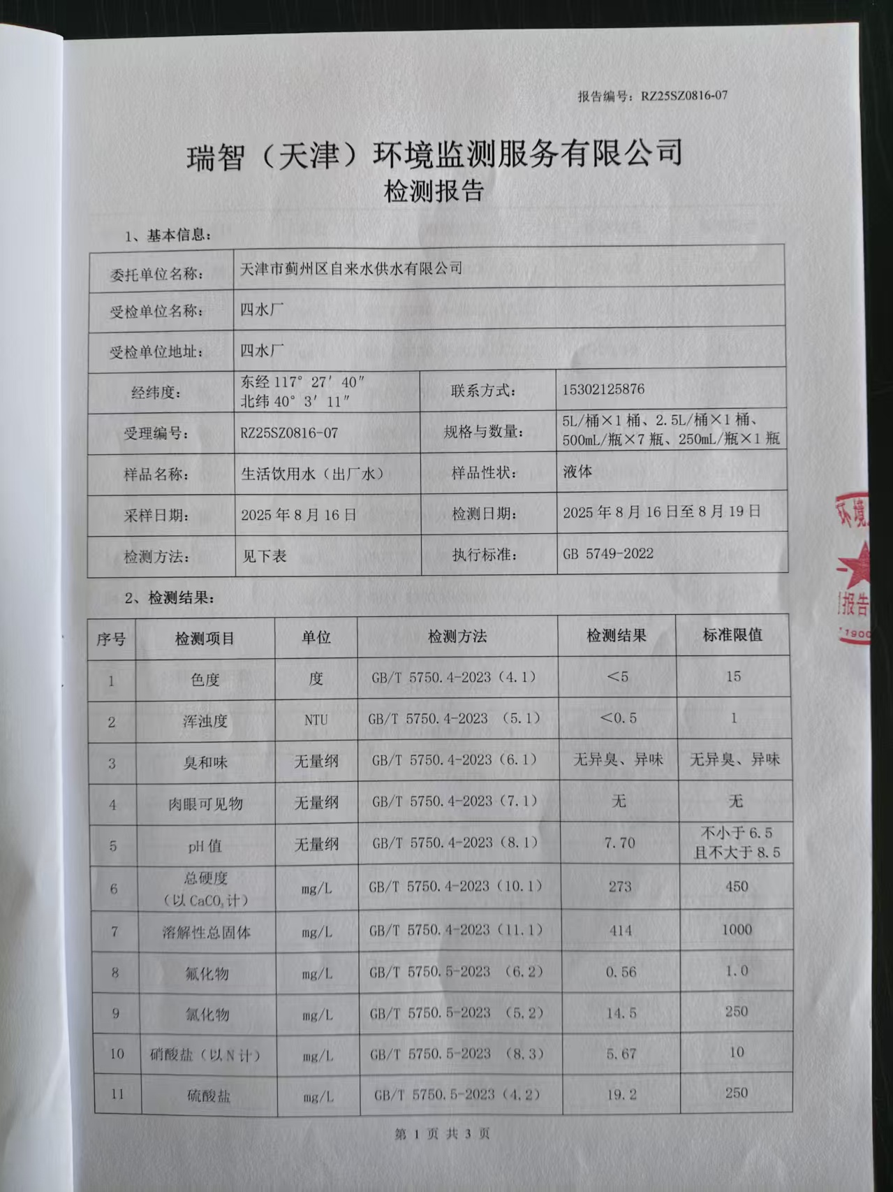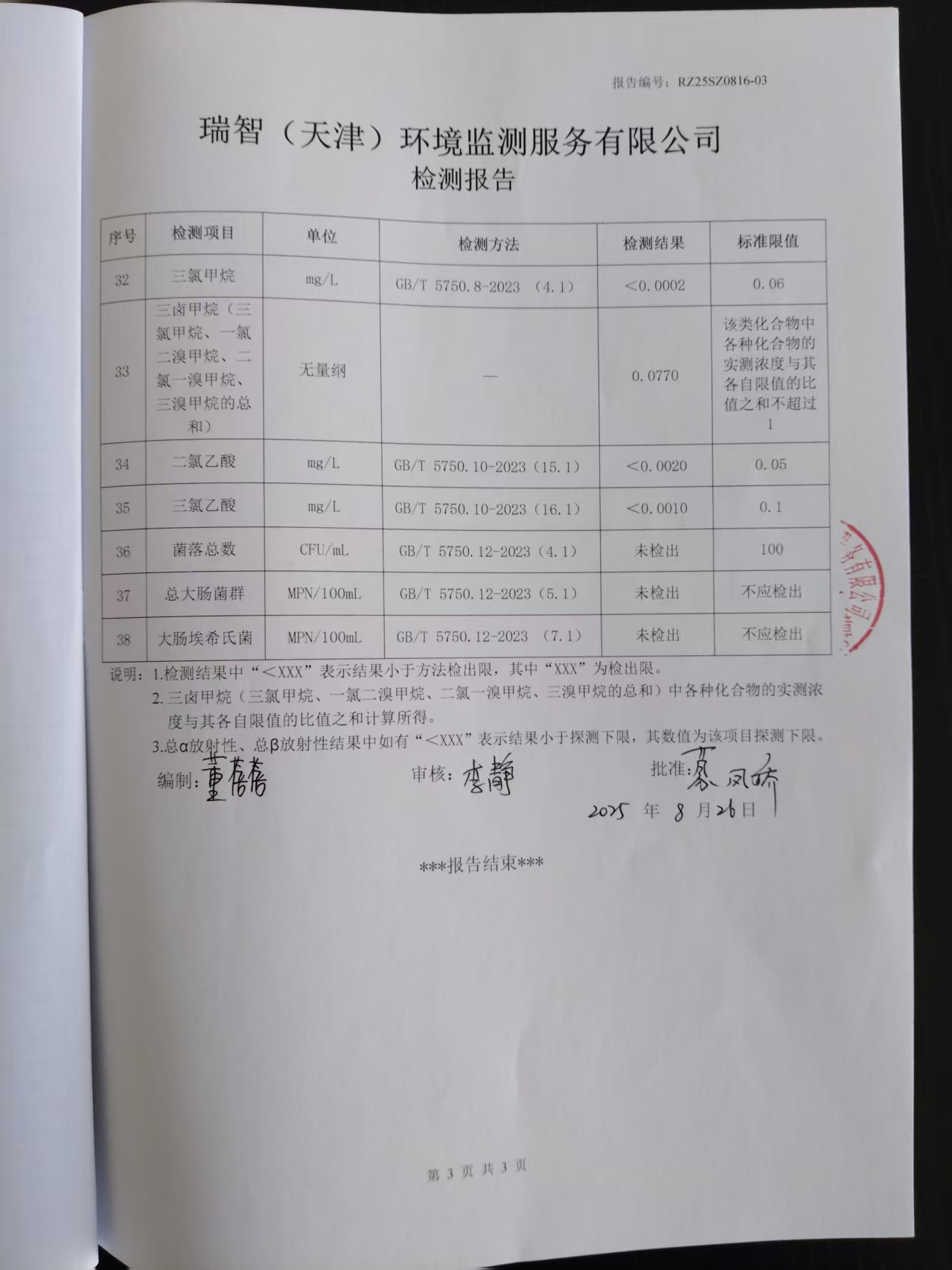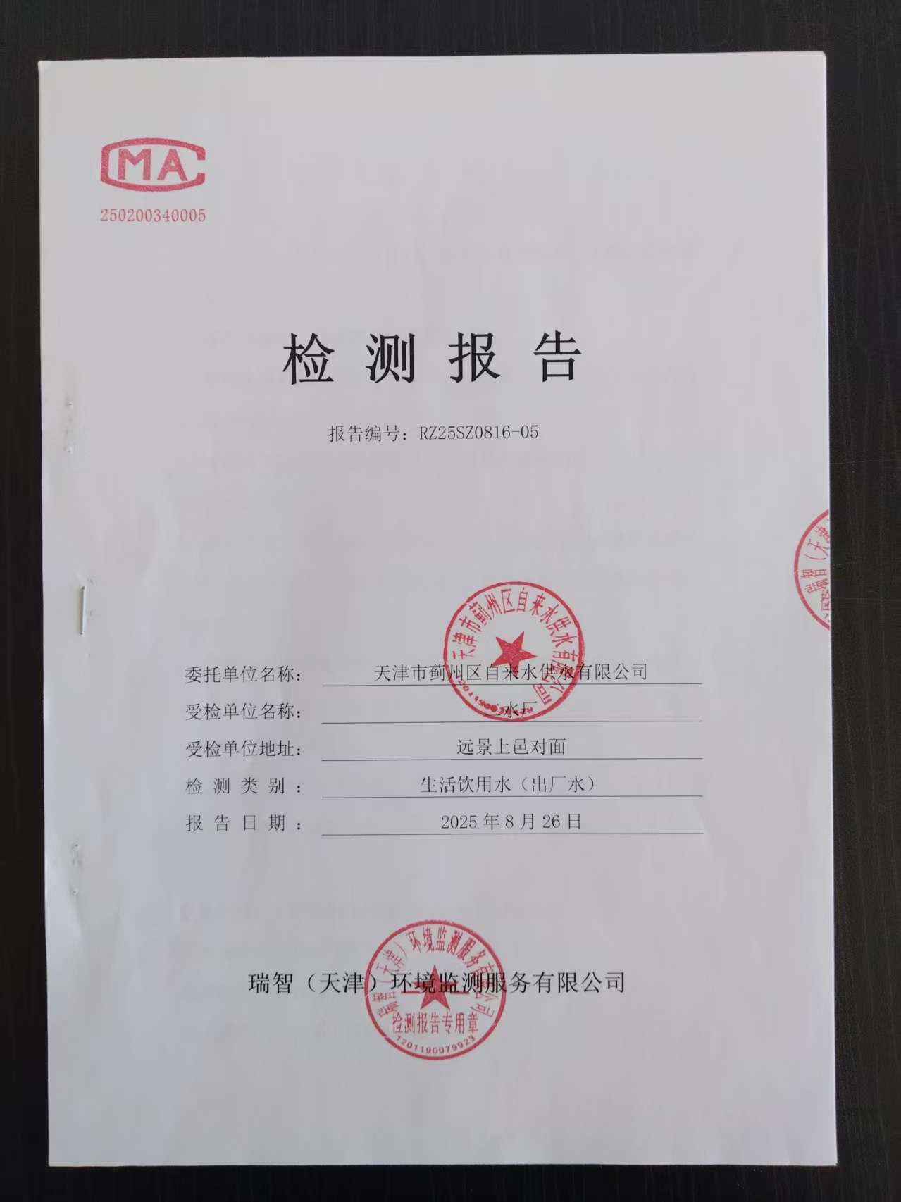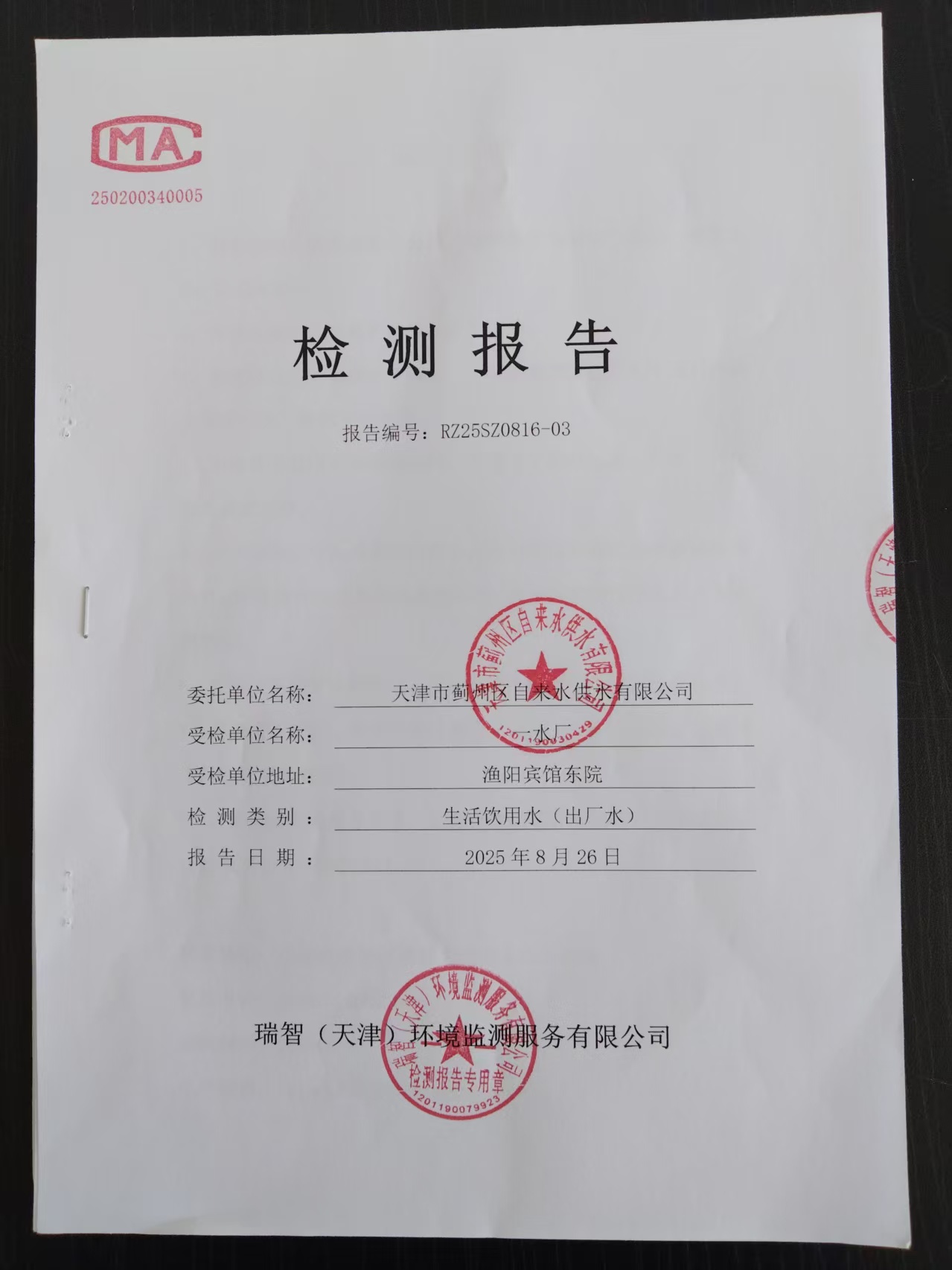 2025年8月份水質(zhì)檢測報告