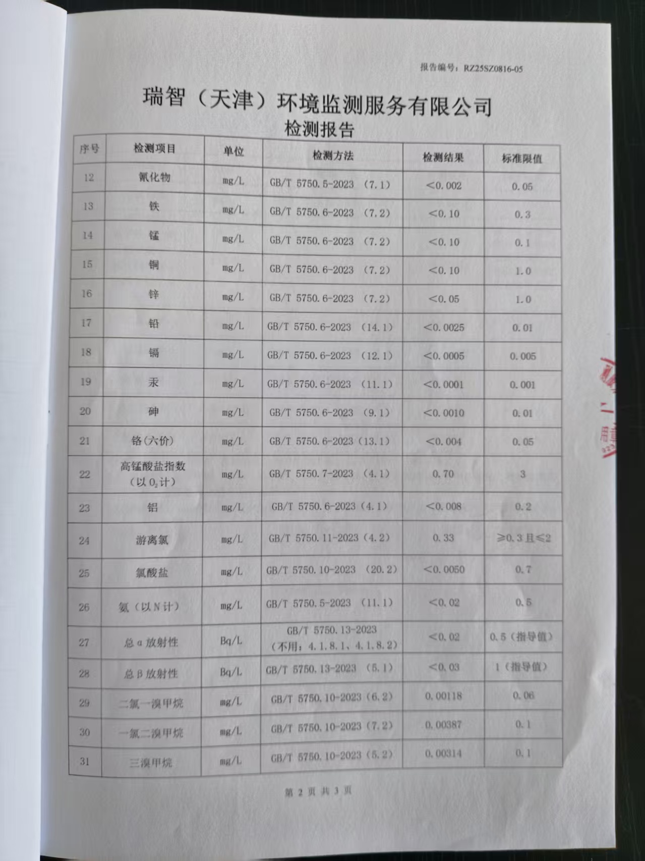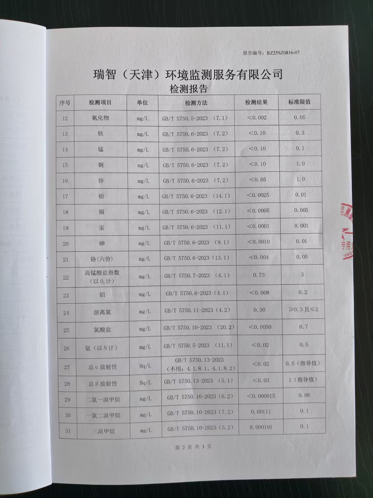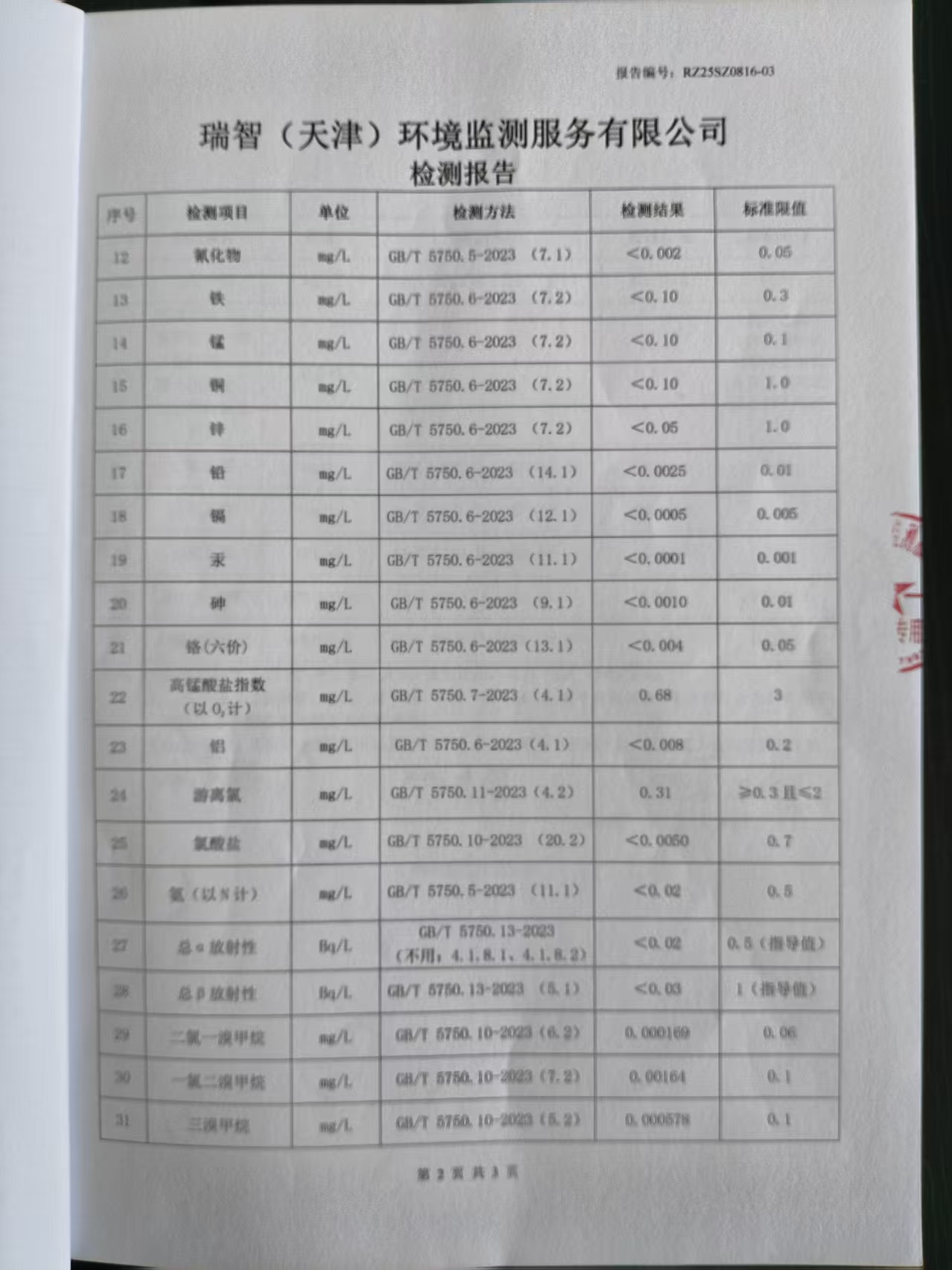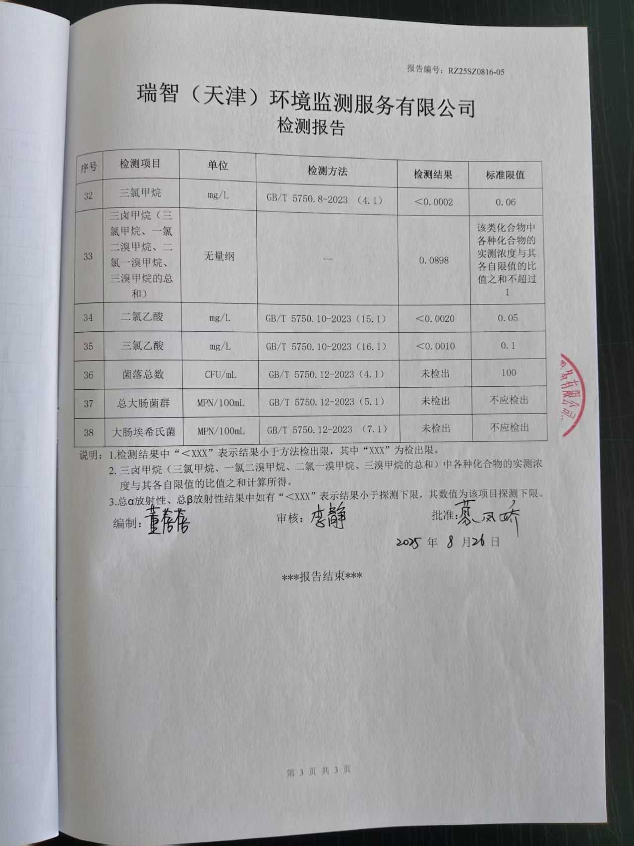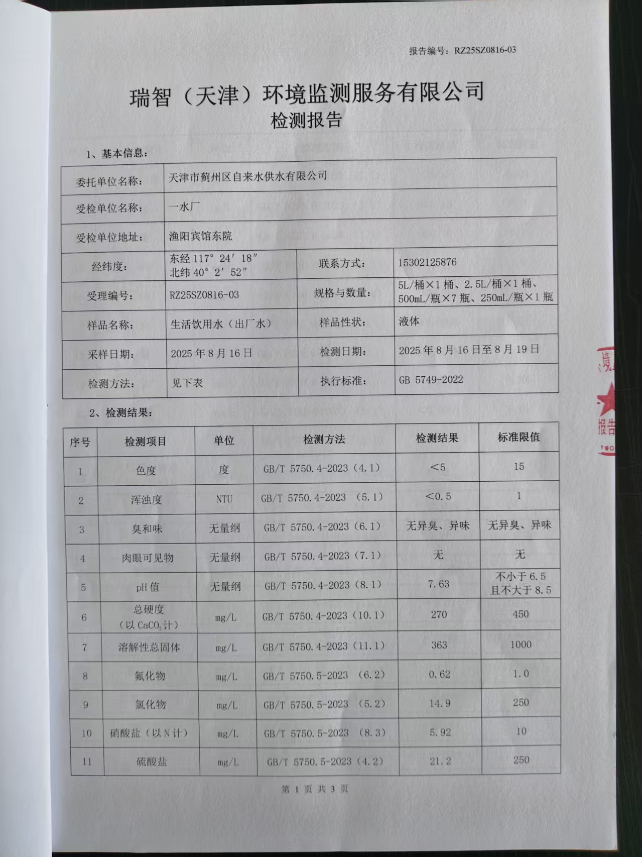 2025年8月份水質(zhì)檢測報告